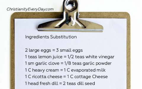Often times I get to cooking and find that I have run out of an ingredient. Well, rather than scratch the whole project, I will refer to my Cooking Ingredient Substitution List and have found that it is next to impossible to tell that something was changed. Take a look at what I find works: