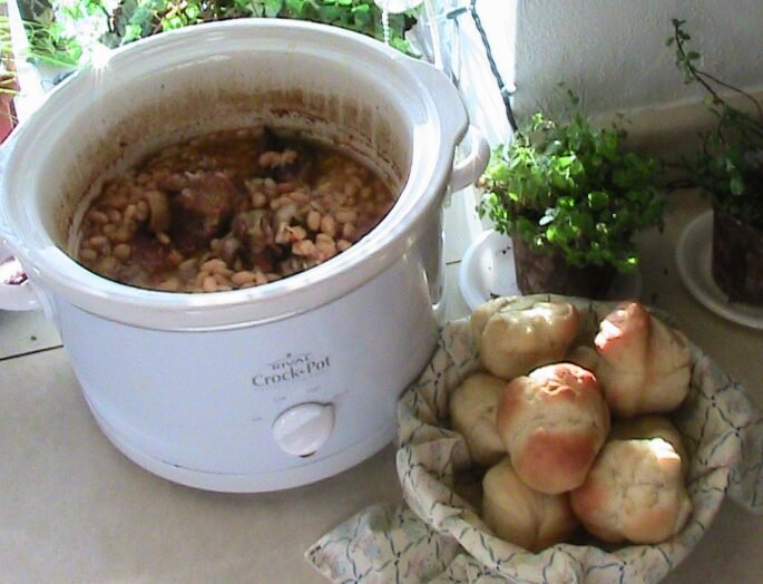 It doesn’t really have to be the beginning of a new year to make this delicious soup but it seems like every year around this time I make some New Year’s Bean Soup. I call it that because it’s right around then I see that ham bone from Christmas in the freezer. Here’s my recipe (outta my head).