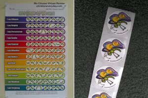 The kit that I received for review is printed in the New International Reader’s Version of the Bible and I am happy to say that it is also available in the King James Version. So sorry I forgot to mention my version preference to Heather earlier. We Choose Virtues is even available in a Secular version — and the Parenting Cards have Bible verses even on those!
