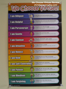 As the Lord would have it I mentioned that I had homeschooled my children and that I do product reviews here and Christianity Every Day. I offered to review her homeschool product. And so today I share with you my review of the We Choose Virtues homeschool kit.