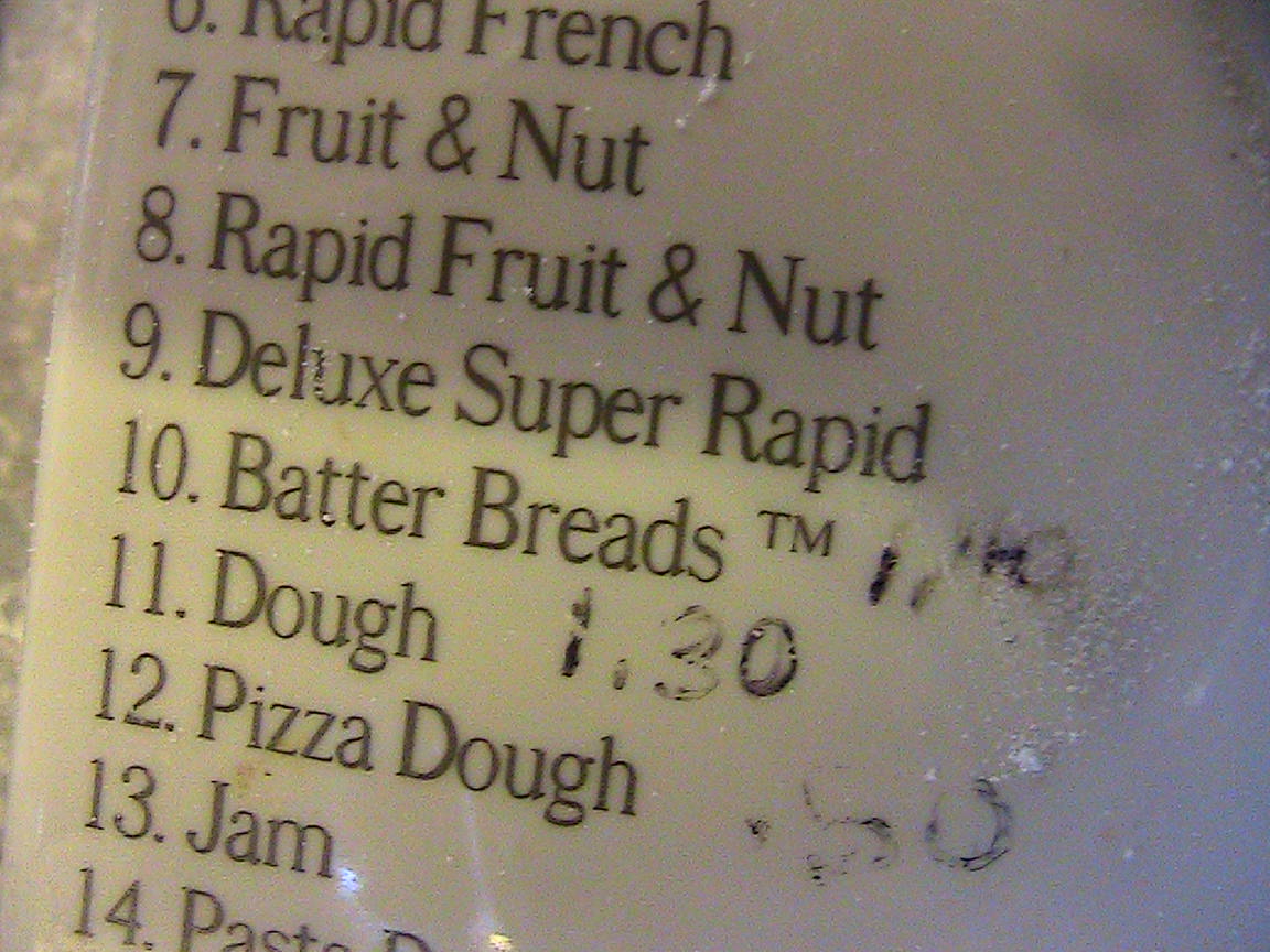 • 2 C plus ¼ C White flour (this for altitude 6,000 feet and above, hold off on the extra 1/4 cup flour if lower altitude and add it later if you need it)