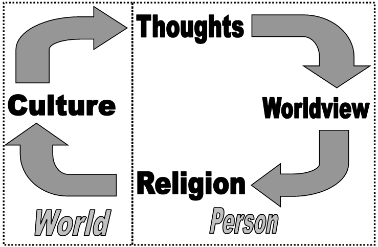 As our behaviors and beliefs influence others in our culture, we also are influenced by the behaviors and beliefs of others in our culture. In turn, these cultural influences alter or reinforce our thoughts that again affect our worldview and rules we adopt to control our behaviors.