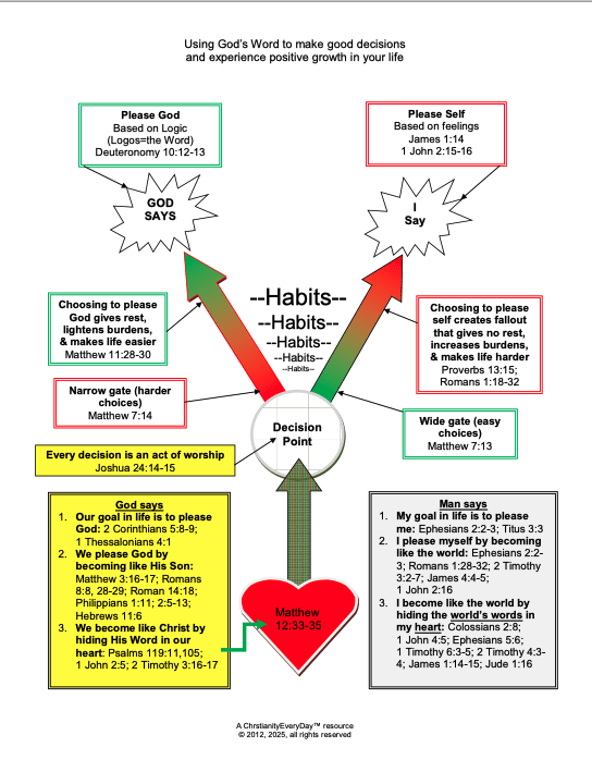 Now we will examine a Decision Tree for using “God’s Word to make good decisions and experience positive growth in your life”. Note: If you would like to download a PDF copy for yourself, then click on the following link: The Decision Tree
