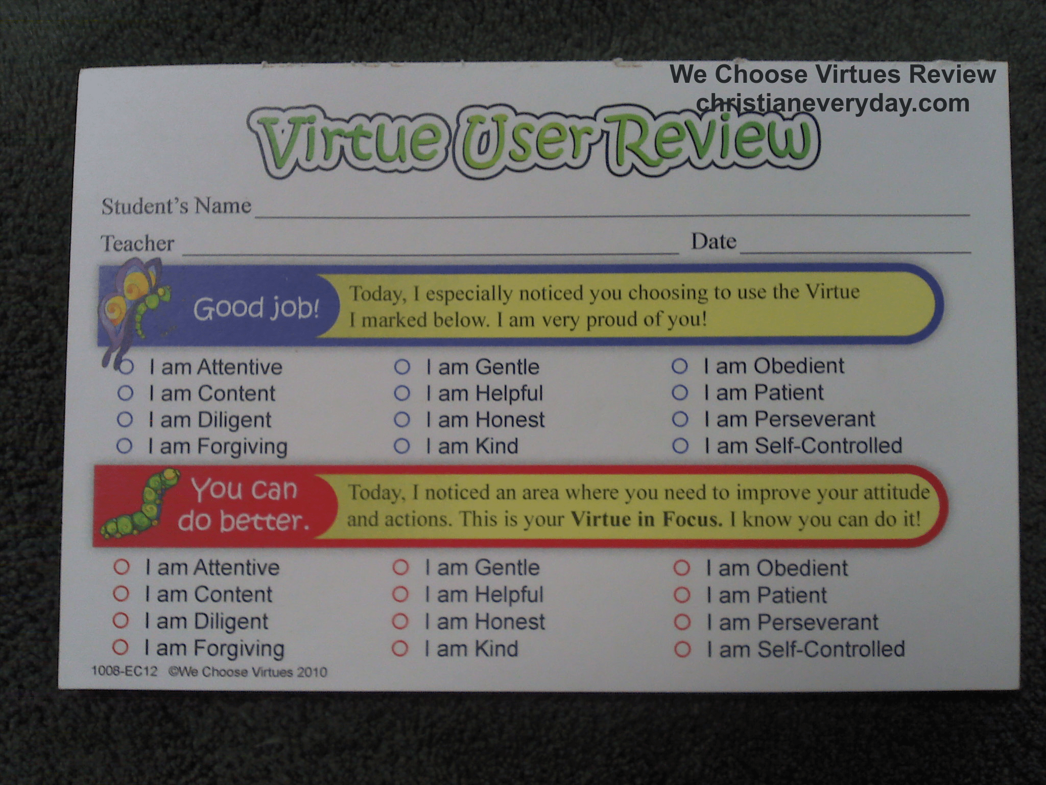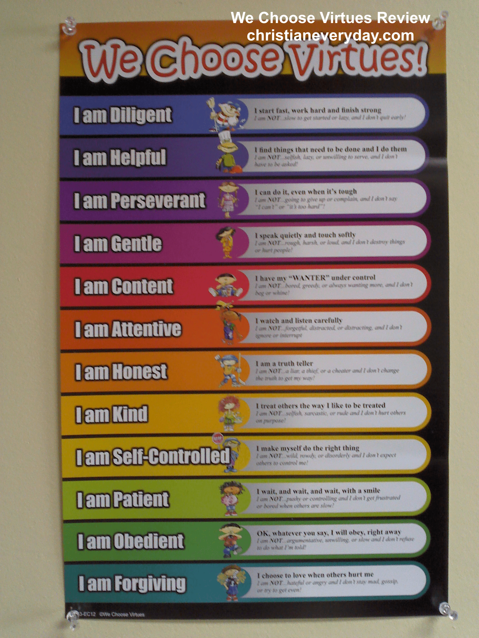 As the Lord would have it I mentioned that I had homeschooled my children and that I do product reviews here and Christianity Every Day. I offered to review her homeschool product. And so today I share with you my review of the We Choose Virtues homeschool kit.